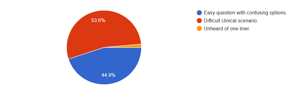 Most students relied on time-management and calm execution rather than a fixed rigid strategy. A common approach was to attempt sure-shot and easy questions first, saving time for longer, confusing, or clinical questions later. Many focused on ruling out options, reading the last line or options first, and applying clinical reasoning and common sense. Avoiding panic, not revisiting answers unnecessarily, and staying mindful of time were recurring themes. Overall, students emphasized staying composed, prioritising easier questions, and using elimination and clinical logic to navigate the paper effectively.