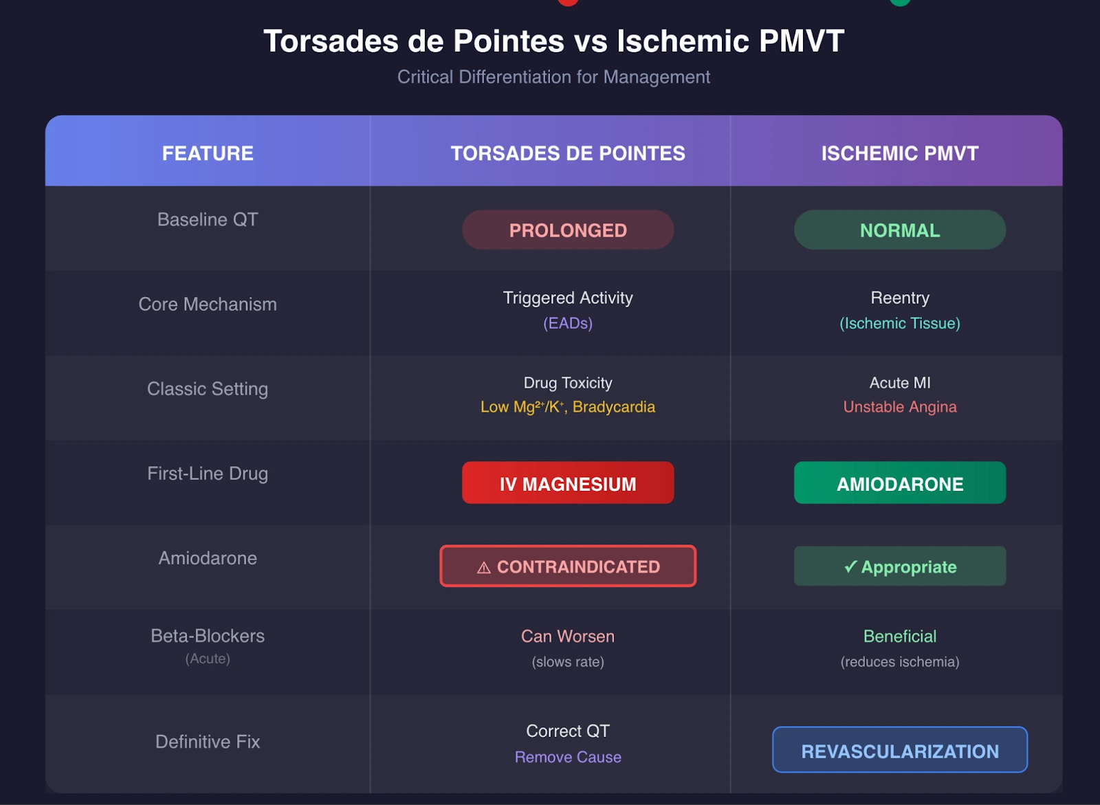 The Crucial Distinction Between Ischemic PMVT and Torsades de Pointes